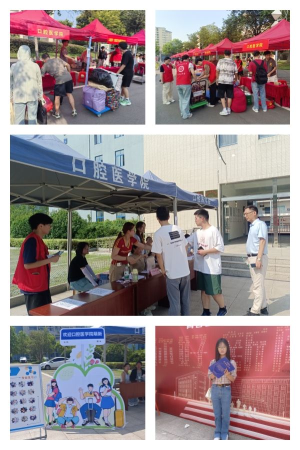 “暖心”服务,助力新生无忧入学。学院成立由学院领导、辅导员、学生干部等60余人组成的志愿服务队,划分为车站迎新组、新生报道组、行李搬运组等五组, 精准对接新生需求,分工明确做好迎新工作,确保迎新工作有序进行。迎新期间,学院领导和辅导员深入报到现场和学生宿舍,了解学生的需求和生活情况,现场解决家长和学生遇到的困难;志愿者们忙碌的身影穿梭在报到现场和公寓楼之间,暖心服务。他们用热情与认真的态度为新生“保驾护航”,传递了口腔师生的温情。