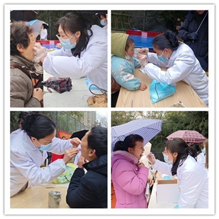 活动中,教工党员为冒雨前来寻医的居民仔细检查口腔状况,悉心讲解了口腔保健、牙齿预防保护、老年人牙齿保健方面的常识,并针对日常护理和就医需要提供有效的意见和建议。学生党员发放口腔健康知识宣传单,向居民宣讲如何进行口腔保健、有效预防和降低口腔疾病的发生。学生志愿者借助牙齿模型向大家展示正确的刷牙方法,分享刷牙、护牙等口腔健康小常识。天空虽然飘着细雨,所有活动成员都热情不减,依然耐心细致地为居民们解惑答疑,受到了社区群众的一致好评。