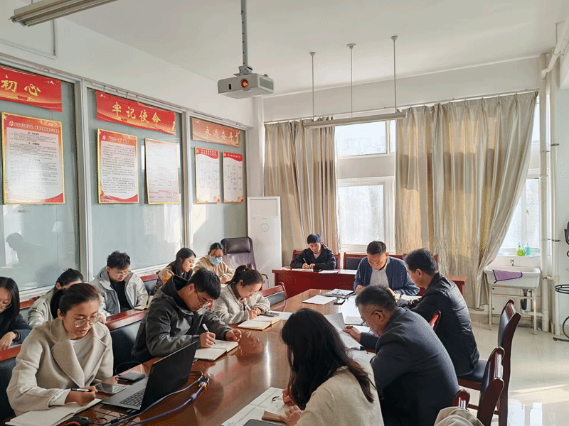 会议视频学习了中国共产党第二十届中央委员会第四次全体会议公报;孙文兵书记传达学校党委理论学习中心组(扩大)学习会议精神,详细解读《中国共产党思想政治工作条例》的相关内容,指出《条例》的制定和实施,体现了党中央对思想政治工作的高度重视,是新时代加强和改进思想政治工作的纲领性文件和重要制度保障;张云波副书记领学习近平总书记所作的《关于<中共中央关于制定国民经济和社会发展第十五个五年规划的建议>的说明》;刘宏升、耿琳雅两位老师分别结合学习内容,立足岗位实际做重点发言交流。