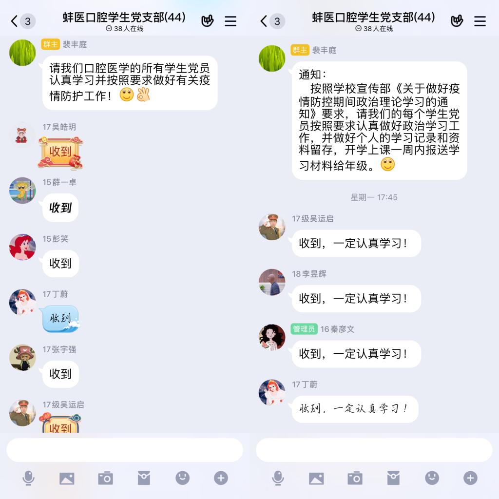 学生党支部目前共有师生党员44名,自疫情发生以来,在班级同学情况摸排、钉钉健康打卡上报和志愿服务活动等方面均能起到模范带头作用。大家在认真做好自身的安全防护工作的同时,时刻保持手机通畅,积极通过党支部群、各自的班级群、电话或邮件等形式,及时按照学校要求,认真做好51风流