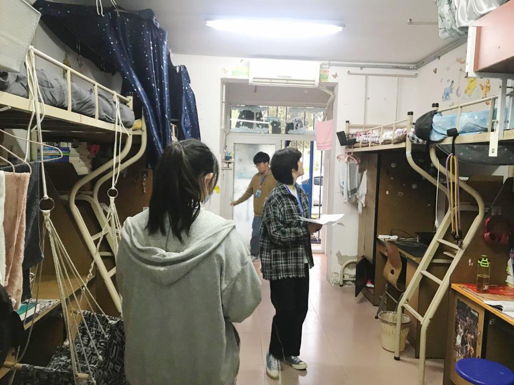检查过程中,同学们积极配合,宿舍地面干净,桌面整洁,物品放置井然有序,整体环境十分温馨。特别是1栋122宿舍、7栋405宿舍更是让人眼前一亮、印象深刻。