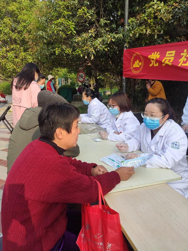 党总支组织党员和学生志愿者在龙湖春天小区开展“我为群众办实事”口腔义诊主题党日活动,为社区居民提供免费咨询,普及口腔保健知识。