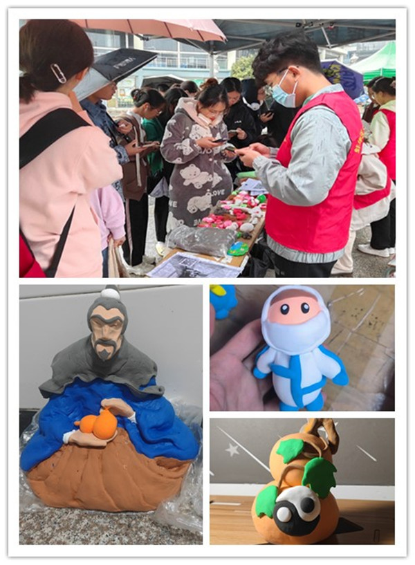 于11月12日在食堂大圆盘举办以“吾道始岐黄,吾心源医德”为主题的传统医学元素创作活动。同学们用粘土捏制出葫芦、药瓶、串铃、招幌、医药箱等古代行医工具,有的创作出悬壶济世塑像、“大白”玩偶等,一件件作品向学生们讲述着中国古代医学的发展历程。