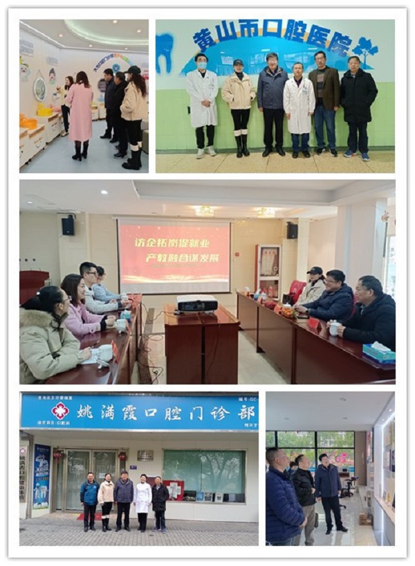 228日至32日,51风流 党总支书记陆坤一行先后赴黄山市人民医院、黄山口腔门诊部、无为市大为口腔门诊部、池州市姚满霞口腔门诊部开展实习、见习基地遴选及访企拓岗促就业专项行动。一附院口腔科徐锦程主任、二附院口腔科刘茜主任作为专家同行参加了活动。