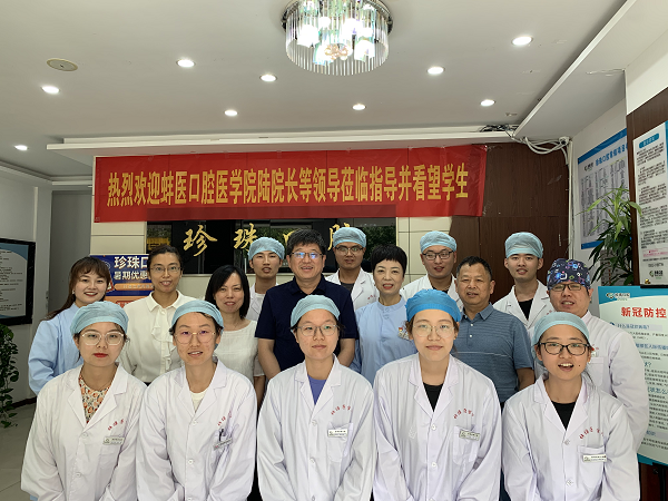 见习生培养上付出的辛苦努力表示衷心感谢。随后与见习生、教学管理人员、见习带教老师进行座谈交流,详细了解学生的见习、生活情况,嘱咐学生要日常注意安全,安心见习。陆坤强调新的培养方案创新提出实践教学方式,将以稳定的见习实习基地为依托,开展教学实践、专业实习、社会调查、志愿服务、公益活动等,通过双方合作和努力,在完成教学任务的同时,把见习实习基地打造成为不仅是口腔医学专业见习实习基地,同时也是社会实践、科学宣传、青年教师培养的阵地以及思政育人的高地。