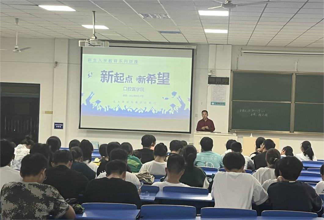 在多媒体G4教室开展“新起点,新希望”新生入学教育讲座,2022级全体新生参与。