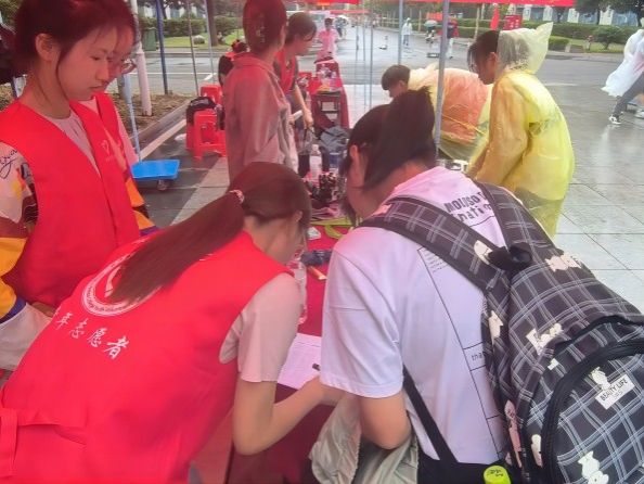 迎新学生志愿者。他们帮助新生搬运行李、指引路线……为更好服务2023级新生入校,学院团总支组织招募学生志愿者,为新生提供路径引导、校园介绍、行李搬运、答疑解惑等服务。
